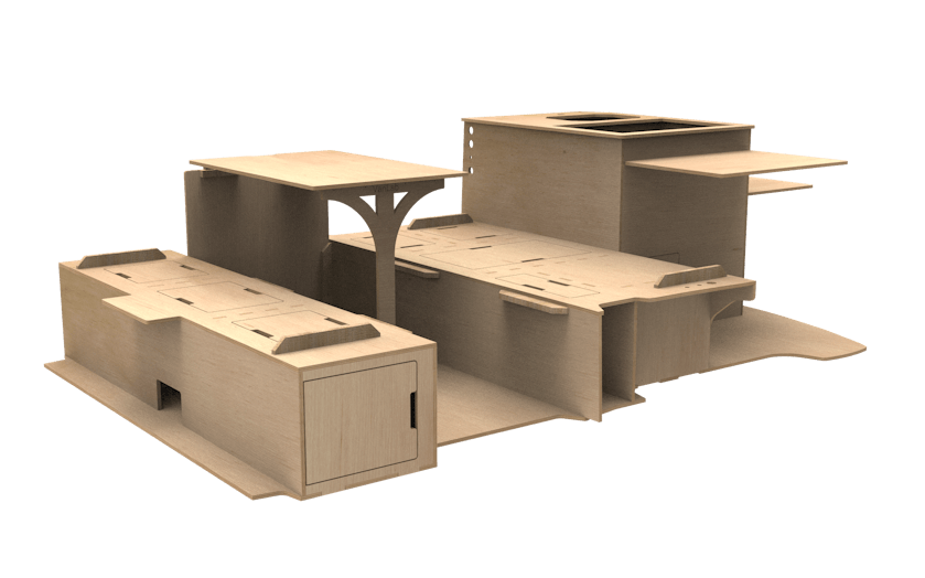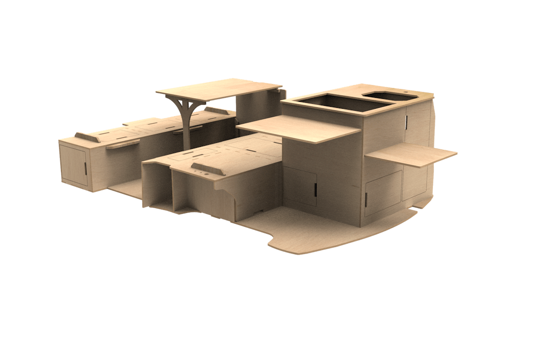 Electrical: As with all VanLab kits, our People Mover van is compatible with our integrated wiring loom. You can fit either a 100Ah or 120Ah leisure battery, with Voltage Sensitive Relay (VSR) connection to the start battery. This means ‘charge while you drive’ with auto-disconnect when you stop. Our loom comes with 3 x LED lights, 2 x voltmeters, 2 x double USB chargers, fridge power socket and additional fused outputs for auxiliary supply. We can also fit a range of 230V inverters for appliance charging. Â